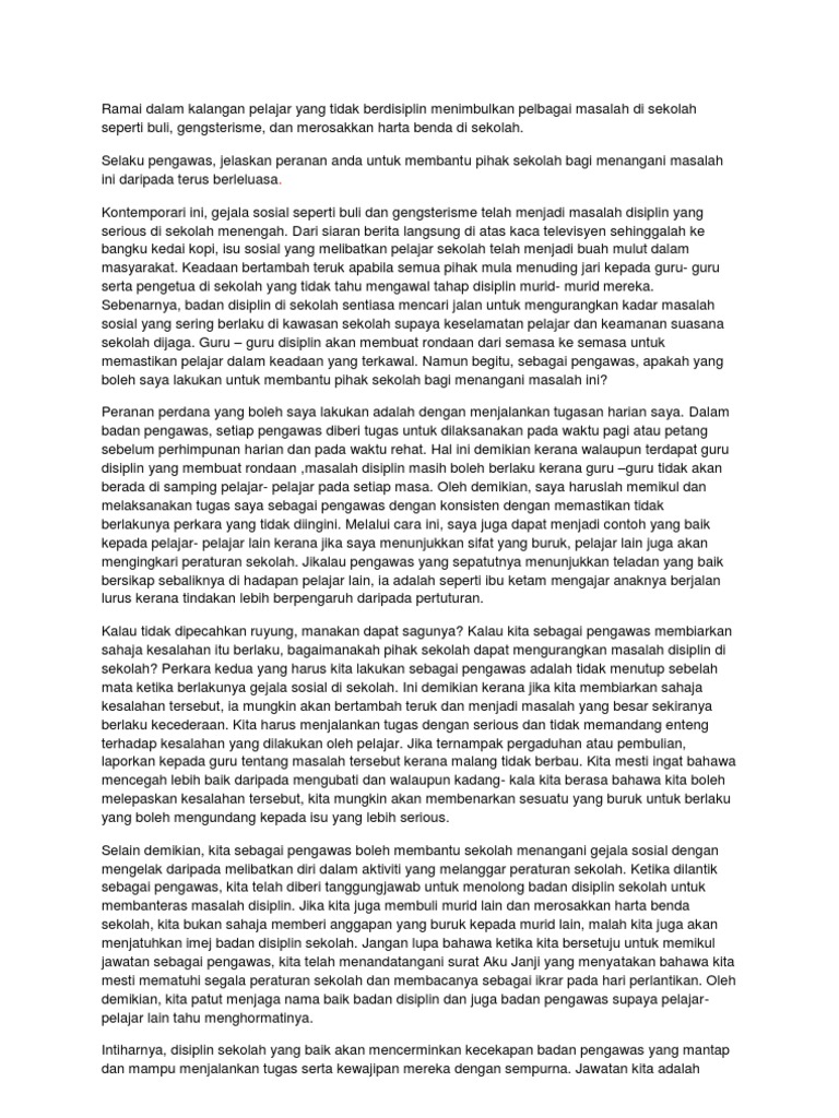 Karangan Spm Peranan Pengawas Untuk Membentuk Murid Yang Berdisipli